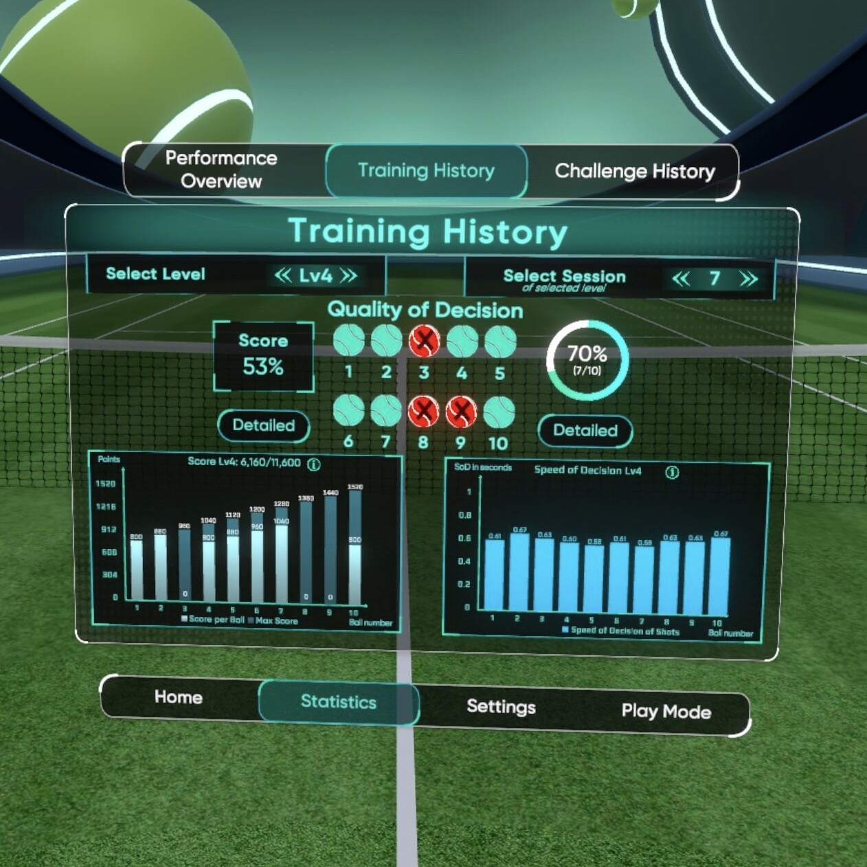 - Gamified drills in realistic tennis scenarios